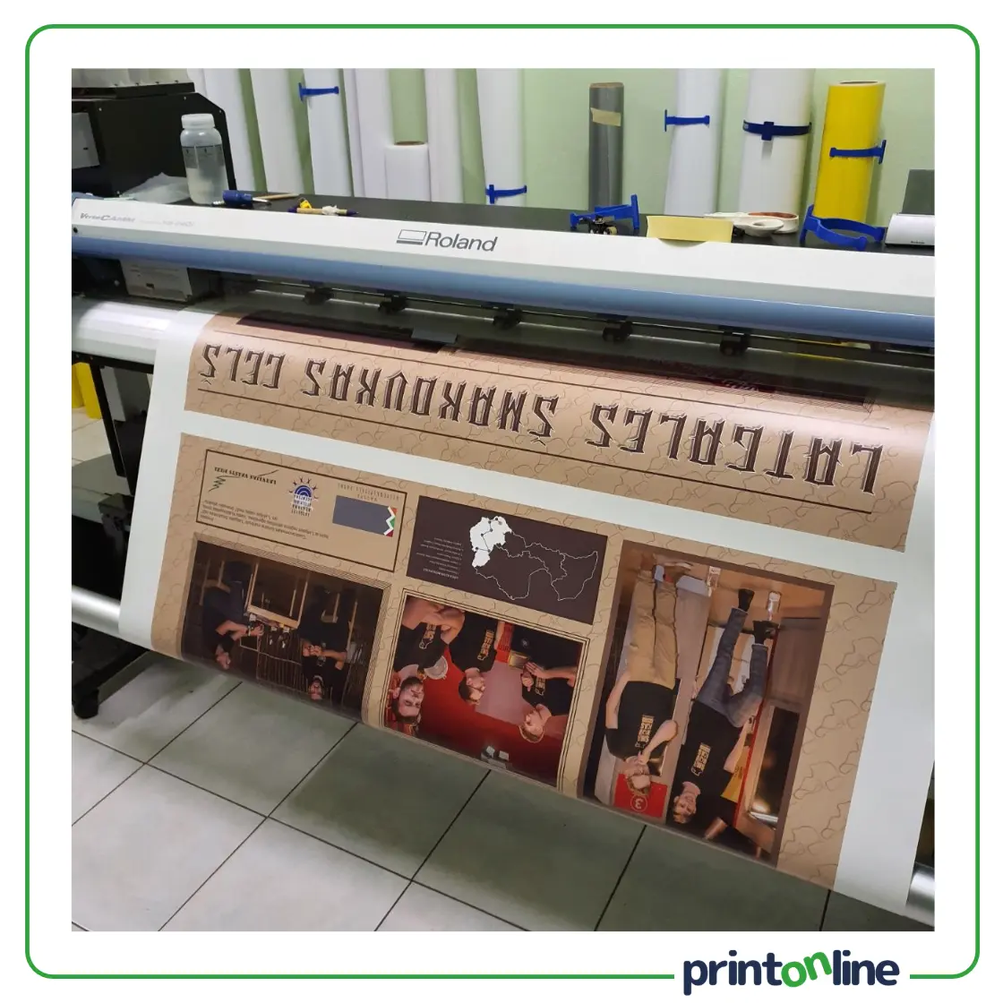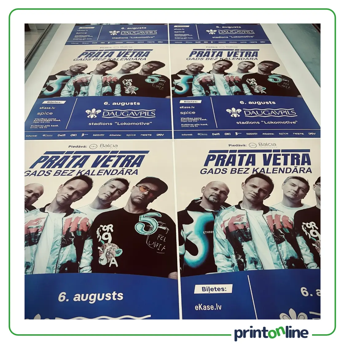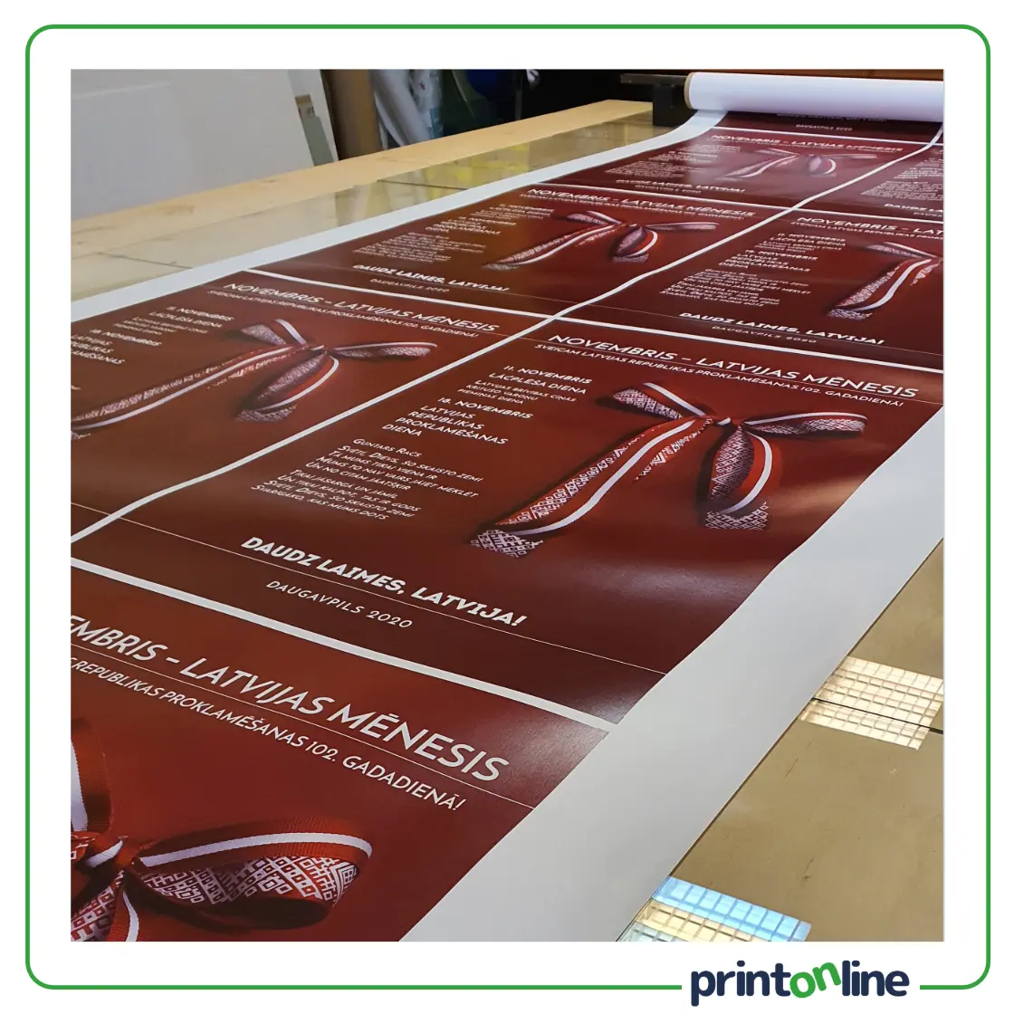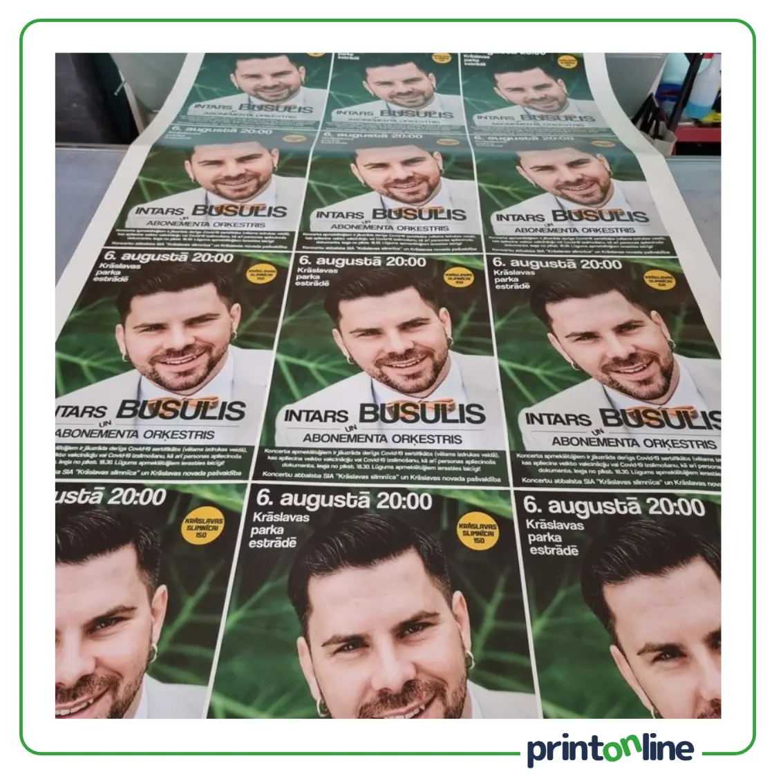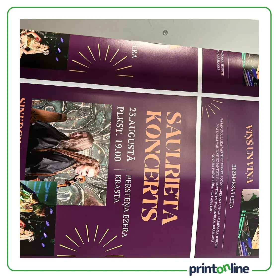 Jūs saņemsiet plakātu ar savu dizainu vēlamajā izmērā. Tā tekstūra padara šo papīru ideāli piemērotu reklāmai. Drukātās krāsas ir piesātinātas un košas.